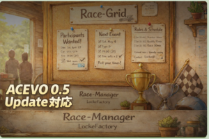 - Race-Manager予約ページEVO0.5対応Rental Serverの予約画面をEVO0.5アップデートに対応し、新コース… 続きを読む: Race-Manager予約ページEVO0.5対応