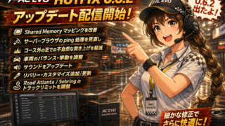 - ACEVO 0.6 変更内容まとめ(公式Changelog日本語訳)|新車・新コース、物理/AI/マルチ大改修Assetto Corsa EVO(ACEVO)Update 0.6 が近づいて… 続きを読む: ACEVO 0.6 変更内容まとめ(公式Changelog日本語訳)|新車・新コース、物理/AI/マルチ大改修