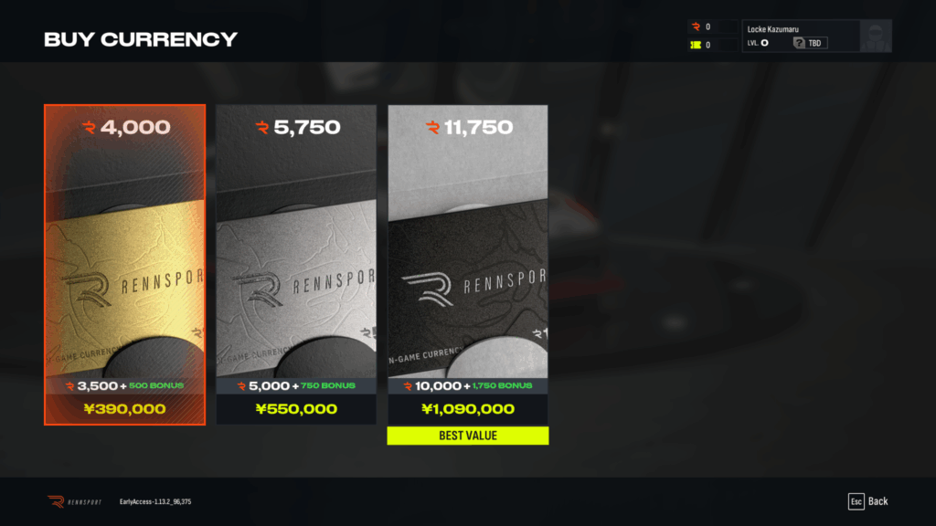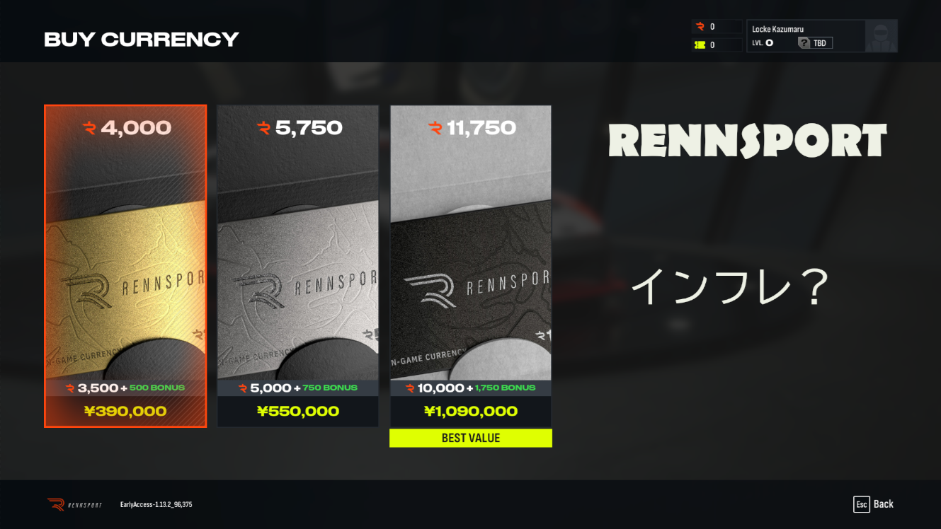 あまりのインフレっぷりに笑っちゃったけど、久々に触ったRennsport、画面UIも少し変わったかな? 次はちゃんと走って、よくなってきていると噂の挙動やUI設定を試してみようと思います。