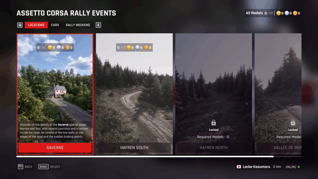 • いきなり全部遊べるわけじゃなく、最初は 2ロケーションのみ解放(たぶん“Saverne”と“Hafren South”)。