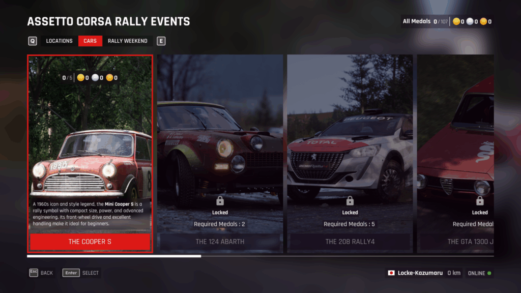 • 初期アンロックは Mini Cooper S(FWDの入門車) のみ。