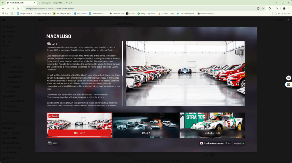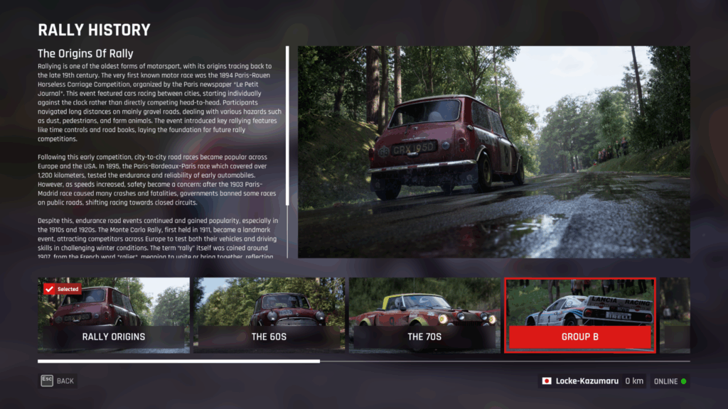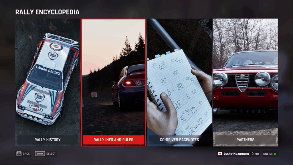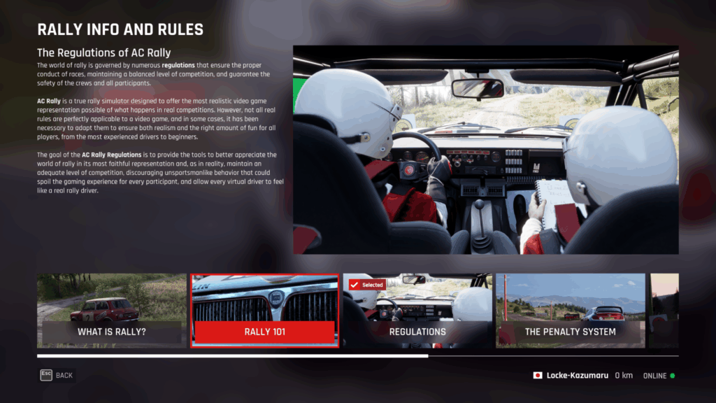 内容はすべて英語で、量もかなり多いため、日本人ユーザーの多くはここを読み飛ばしてしまうと思います。ただ、構成自体はよくできていて、ラリー文化に触れたことがない人にとって、世界観を補完してくれる資料としては十分な内容です。