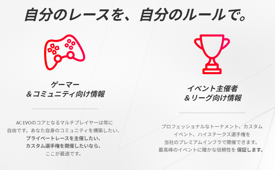 ここで登場したのが、Assetto Corsa EVO 公式レンタルサーバー。