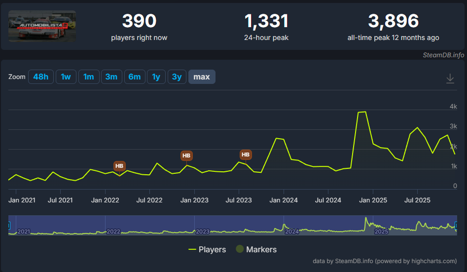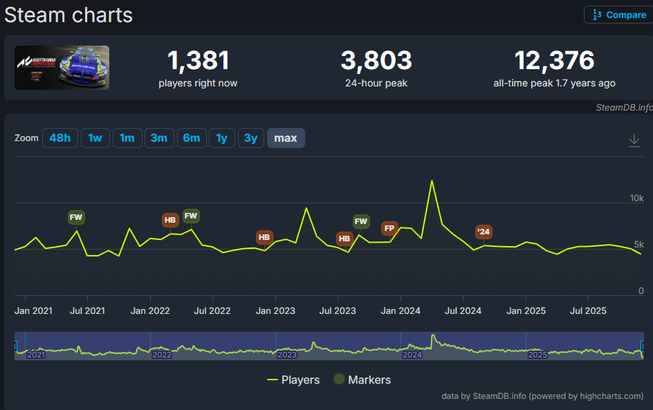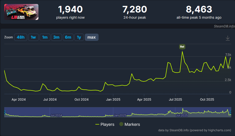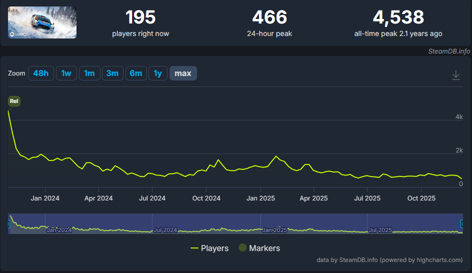 SteamDB の同時接続数チャートを見ると、そのタイトルの息吹が聞こえます。