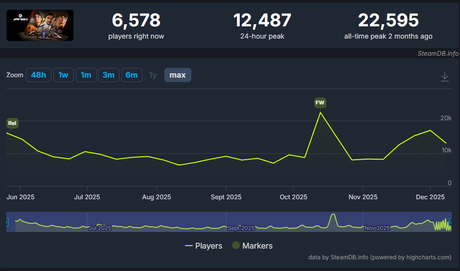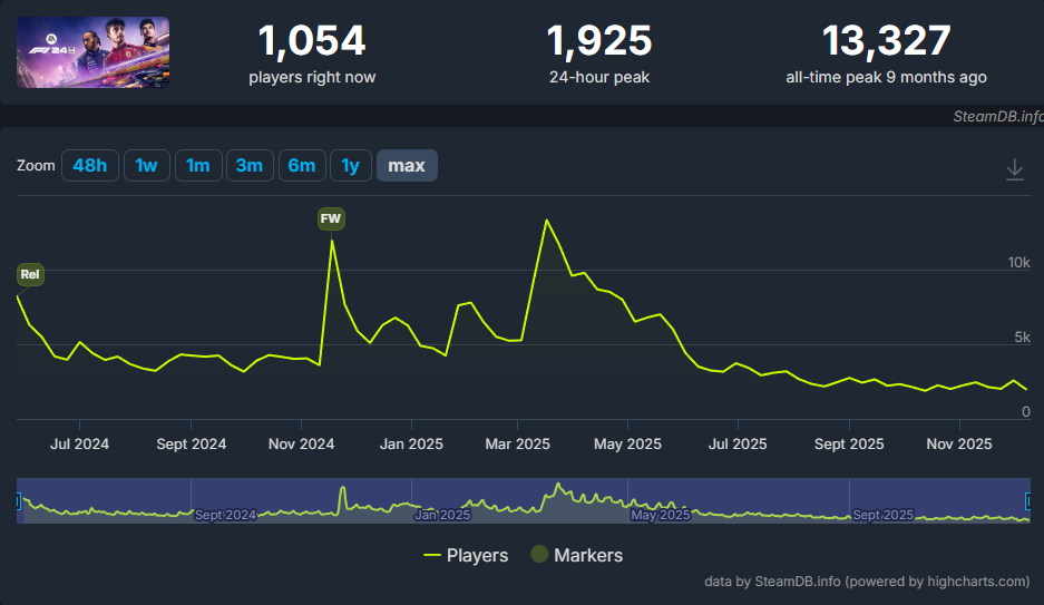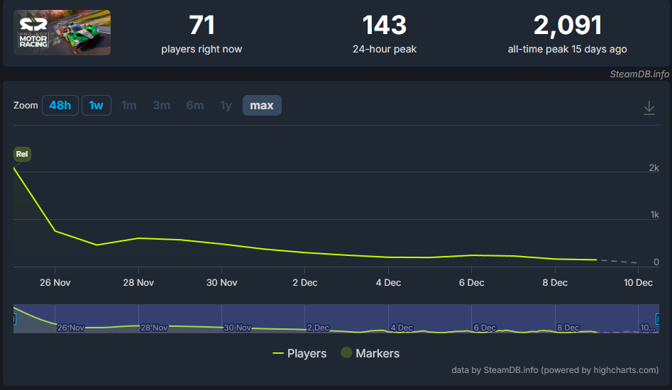 しかし、SteamDBの同接推移を見ると明らかなように、