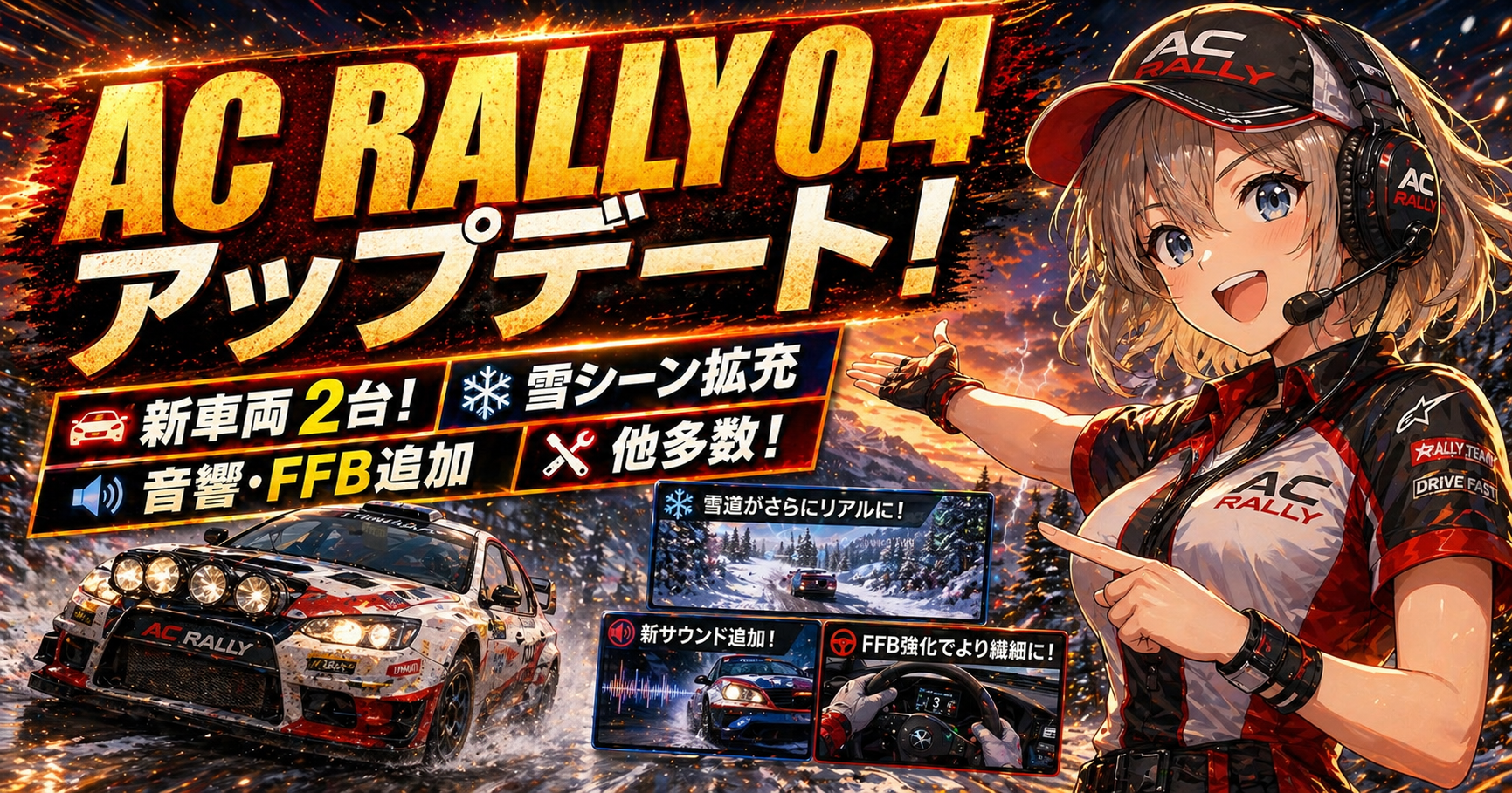 Assetto Corsa Rally Update 0.4まとめ|新車2台+雪拡張、そしてFullForce/TrueForce対応(4/30予定)